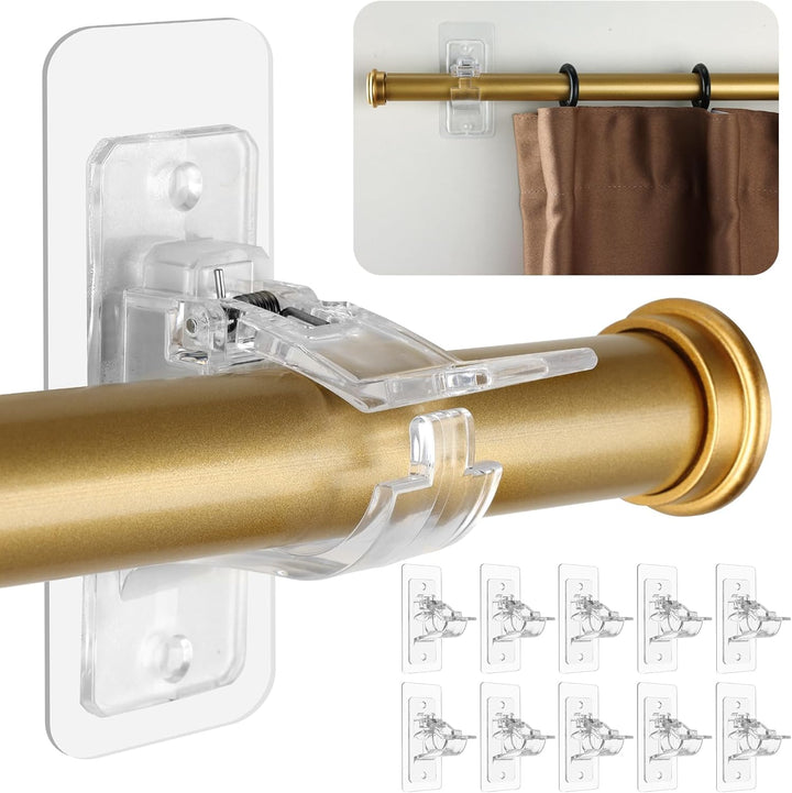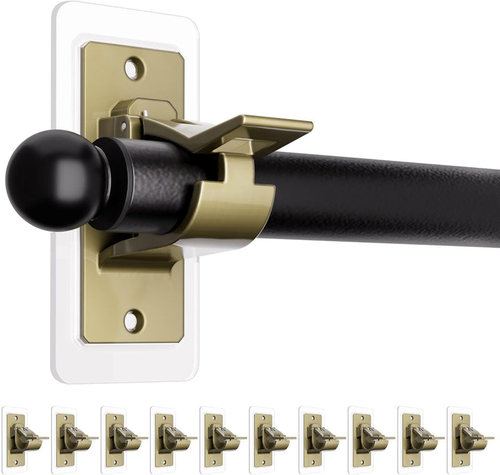- No-Drill Brackets for Curtain Rods 0.5'' - 1.2''Dia: These self-adhesive curtain rod brackets are designed for curtain rods ranging from 0.5 to 1.2 inches in diameter made of any material, whether metal, plastic, or wood; Enjoy hassle-free installation without the need for drilling holes, ensuring no damage to your walls