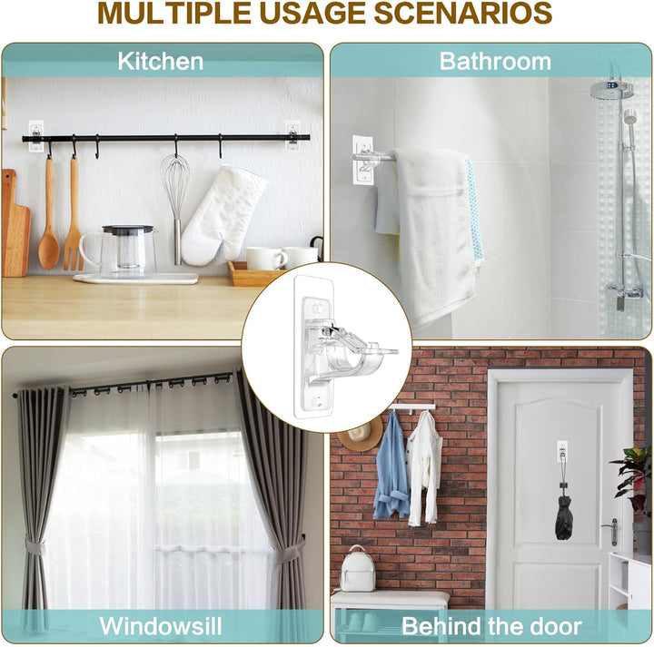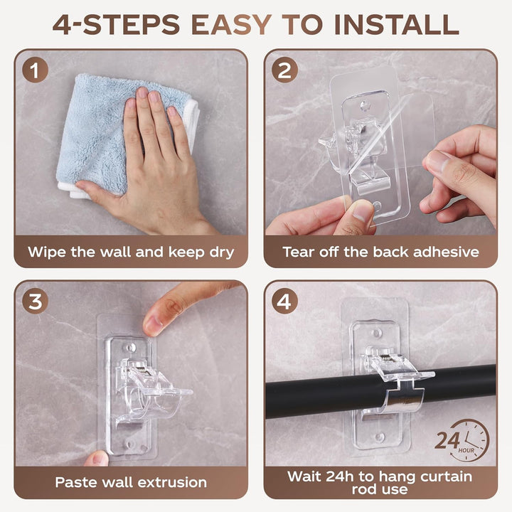 - No Need for Nails, Tools Installation: Simply peel and stick the adhesive back onto various dust-free surfaces; Experience quick and easy installation with self adhesive curtain rod brackets. No drills, nails, or tools required