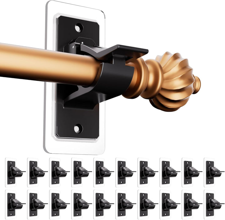 No Drill Curtain Rod Brackets (10/16/20 Pack), No Screw No Drilling Nail Free Self Adhesive Curtain Rod Holders, Heavy Duty Adjustable Curtain Rod Hooks Hangers for Poles of 0.5-1.18Inch, Black